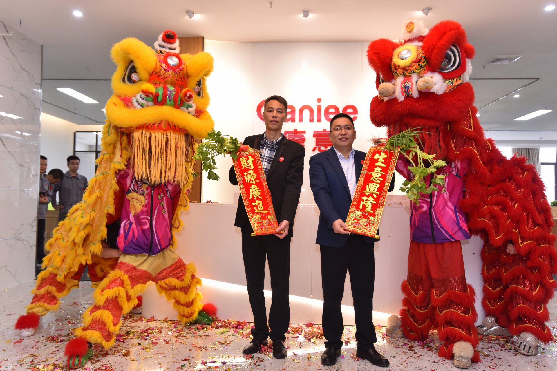 九时零八分,喧天的锣鼓、雀跃的舞狮,广东康意乔迁仪式拉开帷幕。 整洁舒适的办公环境,宽敞明亮、具有现代化气息的办公条件,有力地激发了全体员工对公司迈向新高度的信心和力量。新环境、新起点、新征程,广东康意将励精图治、奋发图强,为实现企业更好更快发展,继续书写崭新的华彩篇章。