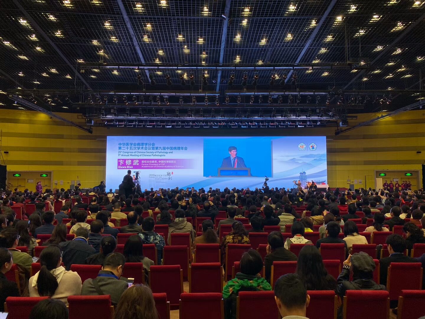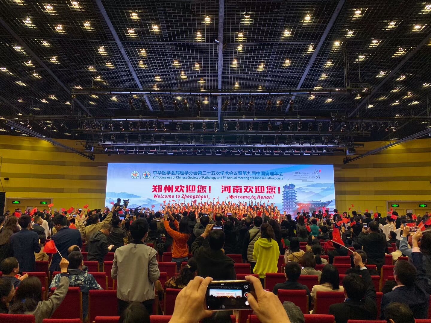 2019年11月15日,早已入冬的郑州依旧挡不住来自全国各地参会人士的热情。万众期待,中华医学会病理学分会第二十五次会议暨第九届中国病理年会在河南郑州拉开了序幕。大会以一首《我和我的祖国》点燃参会人的激情。